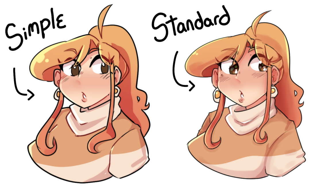 $50 to $250I offer most of my commissions with my standard style in mind! This style has thinner lineart, detailed shading, and extra love on the overall rendering process! Simple busts, like those used for profile pictures or icons will be priced at $50 minimum-- while wild complex pieces with multiple characters and complex details would run closer to $250.